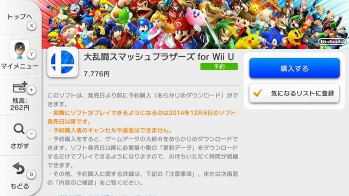 スマブラ For Wii U Dl版に必要な容量は15 6gb あらかじめダウンロード 解説ページもオープン 14年11月13日 エキサイトニュース